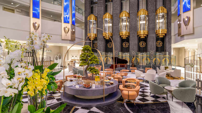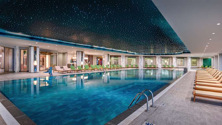 Unser 8 stöckiges Gebäude steht Ihnen mit seinen 487 Standard Zimmer, 40 Familienzimmer, 24 Junior Suiten und 6 behindertengerechte Zimmern zur Verfügung. In der 24 Stunden geöffneten Lobbyetage wo sich 5 Panorama Aufzüge befinden, finden Sie Sitzecken, Tanzfläche, eine Lobby Bar, Avanti Cafe, Delphin Restaurant, a la carte Restaurants und Geschäfte. Es gibt Konferenzräume für Tagungen oder Feiern. Desweiteren sind in der unteren Etage ein Spa Zentrum, Kino, Bowling-Salon, Internet Cafe oder die Disco zu finden. Wenn Sie gestatten können Sie Ihre Zeit im Hallenbad oder in unserem Bar verbringen. Fläche 40.000 m2