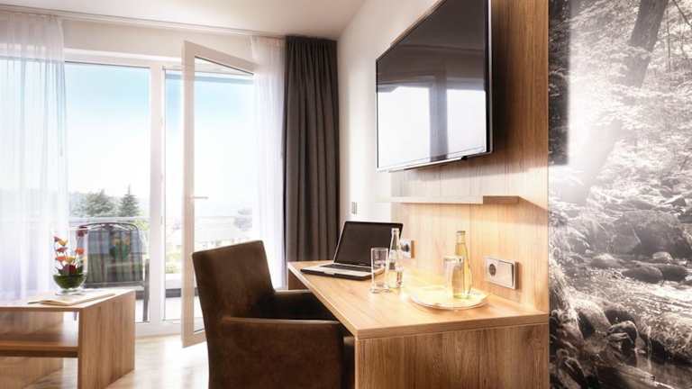 Die Zimmer im Hotel Derichsweiler Hof sind komfortabel und neu gestaltet. Einige Zimmer verfügen über einen Balkon oder eine Terrasse mit Blick auf die Wälder. Zur Ausstattung gehören Sat-TV, Telefon und kostenfreies WLAN im gesamten Hotel.