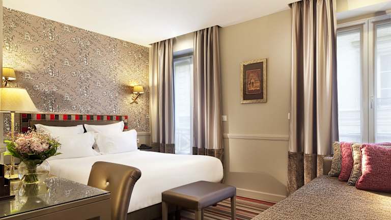 Die schallisolierten Zimmer im Hôtel des Comédies bieten den Gästen eine ruhige und gemütliche Atmosphäre. Jedes Zimmer ist mit einem Flachbild-Sat-TV, einer Minibar und einem eigenen Bad ausgestattet. Einige Zimmer im Dachgeschoss bieten einen atemberaubenden Blick auf die Basilika Sacré-Cœur. Kostenloses WLAN steht den Gästen zur Verfügung, damit sie mit Freunden und Familie in Kontakt bleiben können.