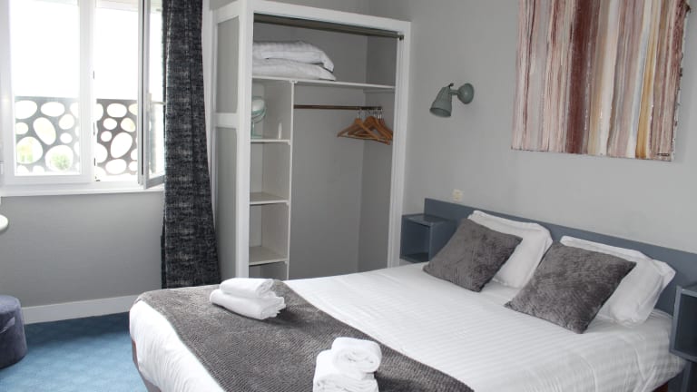 Die Zimmer im Hôtel des Pins sind komfortabel eingerichtet und verfügen über Annehmlichkeiten wie einen Kleiderschrank, einen TV und kostenfreies WLAN. Jedes Zimmer hat auch einen Wasserkocher und ein eigenes Badezimmer mit Dusche und Haartrockner. Einige Zimmer bieten sogar eine Küche mit einem Kühlschrank, so dass Sie sich während Ihres Aufenthalts selbst versorgen können.