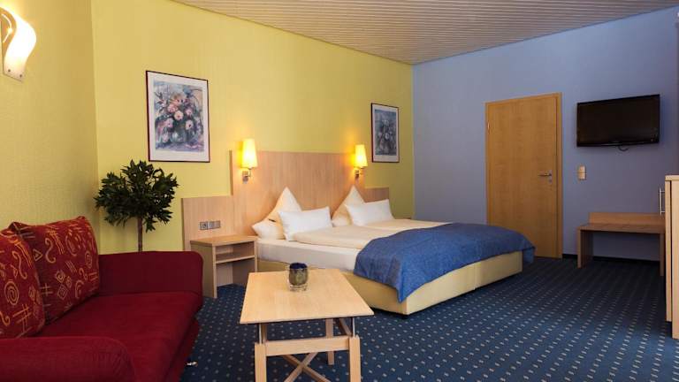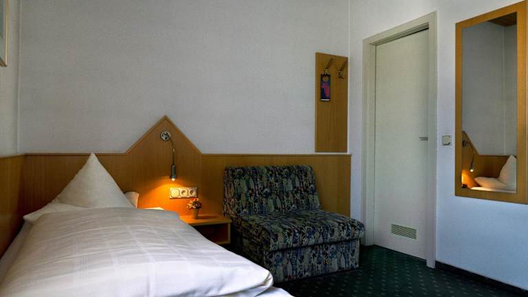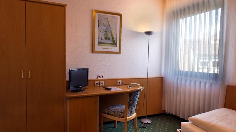 Die Zimmer im Hotel Deutsches Haus Lampertheim sind komfortabel eingerichtet und verfügen über ein eigenes Bad. Zur Ausstattung gehören auch ein Flachbild-TV und Bettwäsche.