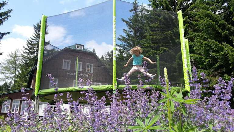 Die Gegend um das Hotel Děvín bietet zahlreiche Möglichkeiten für sportliche Aktivitäten. Im Winter können Sie die nahegelegenen Skilifte nutzen und die Pisten hinunterfahren. Im Sommer eignet sich die hügelige Waldregion von Děvín perfekt zum Wandern und Radfahren. Auch Langlaufausflüge sind hier sehr beliebt. Entdecken Sie die vielfältige Natur und die atemberaubende Landschaft des Nationalparks Riesengebirge.