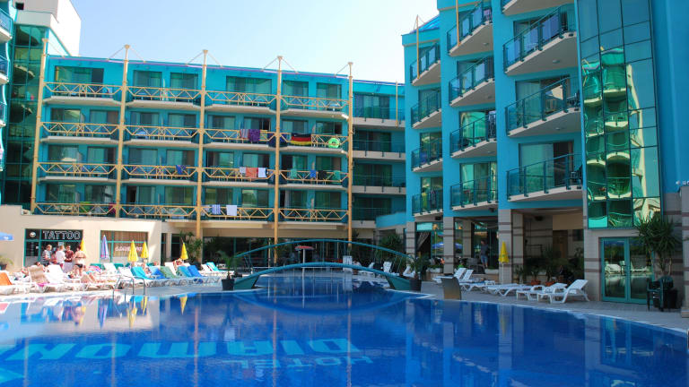 In zentraler Lage in Sonnenstrand liegt das Diamond Hotel, nur 250 m vom Meer entfernt. Hier fühlen sich besonders Familien und junge Gäste wohl, da zahlreiche Unterhaltungsmöglichkeiten in der Nähe liegen. Das Hotel Diamond verfügt über einen großzügigen Rezeptionsbereich, eine Lobbybar, ein Buffet-Restaurant mit offener Terrasse und eine ganz neue Snackbar. Freuen Sie sich auf gelegentliche Show-Koch-Einlagen und Themenabende zur Dinnerzeit. Die Aussenanlagen wurden im Jahr 2019 komplett renoviert und sind sehr hell und modern eingerichtet. Im Bereich des großen Außenpools finden Sie einen speziellen Bereich für Kinder sowie eine hübsche Poolbar. Die Liegen und Sonnenschirme am Pool nutzen Sie kostenlos.