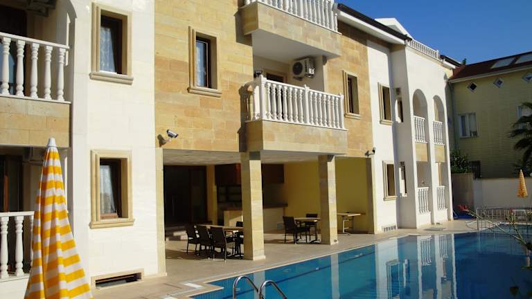 Das Dinara Hotel in Kemer bietet eine ideale Lage, nur 400 m vom Sandstrand entfernt. Mit seinem einzigartigen architektonischen Stil und dem eleganten Balkongeländer verspricht es einen unvergesslichen Aufenthalt. Das Hotel verfügt über einen Außenpool, eine Sauna und komfortable klimatisierte Zimmer. Genießen Sie Ihre Mahlzeiten im À-la-carte-Restaurant oder am Pool und entspannen Sie sich in der schönen Umgebung. Die antike lykische Stadt Phaselis ist ebenfalls einen Besuch wert und der Flughafen Antalya ist nur 60 km entfernt. Ein Flughafentransfer kann auf Anfrage organisiert werden.