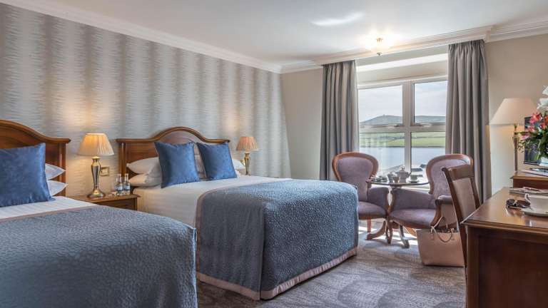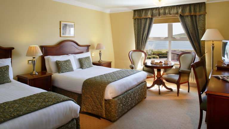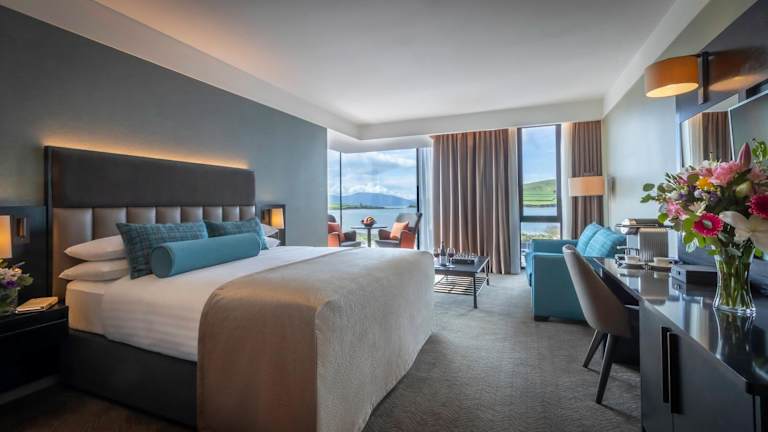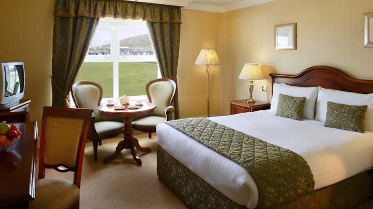Das Dingle Skellig Hotel bietet 113 geräumige Zimmer auf 2 Etagen. Jedes Zimmer verfügt über einen eigenen Balkon, ein komfortables Doppelbett, einen Safe, einen Schreibtisch, einen Kühlschrank, eine Tee- und Kaffeemaschine sowie kostenloses WLAN. Die Badezimmer sind mit einer Dusche und einer Badewanne ausgestattet und bieten Haartrockner, Bademäntel und Hausschuhe. Rollstuhlgerechte Zimmer sind verfügbar und Familienzimmer bieten zusätzlichen Platz für Familien mit Kindern.