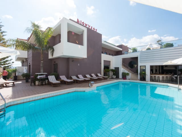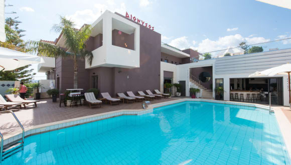 Das Dionysos Hotel befindet sich in Mália und ist vom Flughafen Heraklion aus leicht zu erreichen. Der nächste Strand ist nur etwa 700 m entfernt. In der Umgebung gibt es auch einen Bahnhof, der etwa 700 m vom Hotel entfernt liegt.