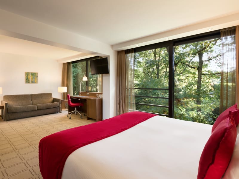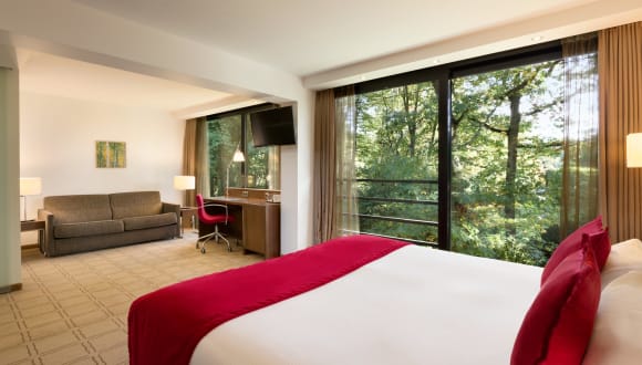 Die Zimmer im Hotel Dolce La Hulpe Brussels sind modern eingerichtet und verfügen über Annehmlichkeiten wie Klimaanlage, Flachbild-Kabel-TV und Telefon. Zur Ausstattung gehören auch Tee- und Kaffeekocher sowie ein Kühlschrank, den die Gäste mit eigenen Produkten befüllen können.