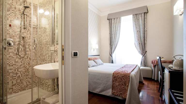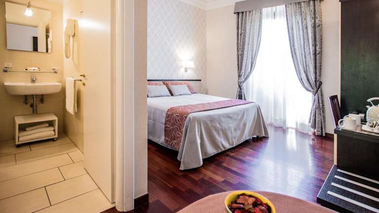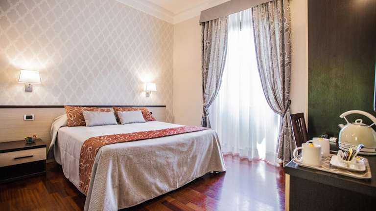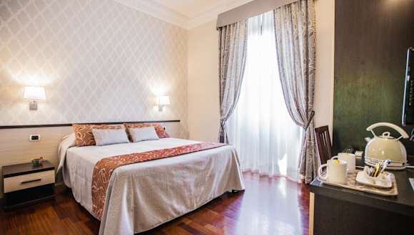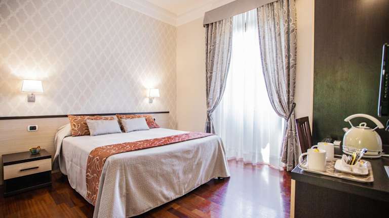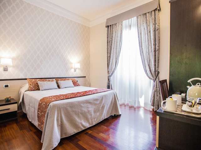 Das Domus Palatina ist ein modernes Hotel in zentraler Lage in Rom, nur wenige Gehminuten vom Hauptbahnhof Rom Termini entfernt. Die Zimmer sind komfortabel und bieten Annehmlichkeiten wie einen Flachbild-TV, ein eigenes Bad und elegante Möbel. Das typisch italienische Frühstück wird auf dem Zimmer serviert und sorgt für einen guten Start in den Tag. Die Basilika Santa Maria Maggiore und das Kolosseum sind ebenfalls in der Nähe des Hotels zu finden.