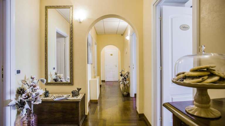 Das Domus Palatina befindet sich in einer zentralen Lage in Rom, was es zu einem idealen Ausgangspunkt für die Erkundung der Stadt macht. Der Hauptbahnhof Rom Termini ist nur 5 Gehminuten entfernt, was eine bequeme Anreise ermöglicht. In der Umgebung gibt es zahlreiche Sehenswürdigkeiten wie die Basilika Santa Maria Maggiore und das Kolosseum, die bequem zu Fuß erreichbar sind.