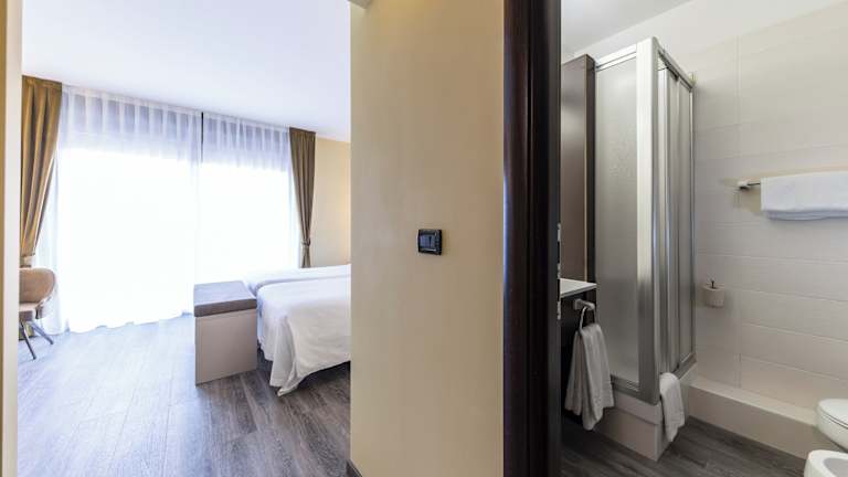 Die Zimmer im Hotel Donatello Imola sind geräumig und bieten den Gästen einen komfortablen Rückzugsort. Die meisten Zimmer verfügen über einen eigenen Balkon und sind klimatisiert. Die Zimmer sind mit Parkett- oder Teppichböden ausgestattet und bieten modernen Komfort.