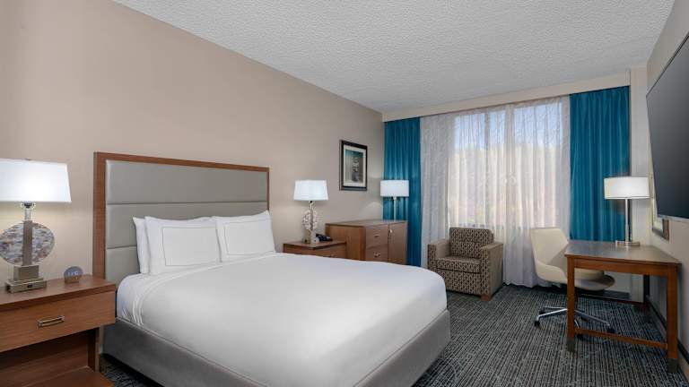 Die 175 Nichtraucherzimmer des Hotels sind über einen Aufzug erreichbar und bieten komfortable Unterkünfte mit Annehmlichkeiten wie einem Bett der Marke Sweet Dreams, kostenlosem WLAN, Klimaanlage und Heizung. Zur Ausstattung gehören auch ein Safe, eine Mikrowelle, eine Kaffeemaschine und ein Schreibtisch. Die Badezimmer verfügen über eine Dusche oder eine Badewanne, einen Haartrockner und Kosmetikartikel. Rollstuhlgerechte Zimmer mit barrierefreien Badezimmern sind ebenfalls verfügbar.