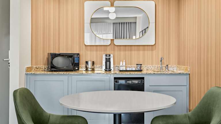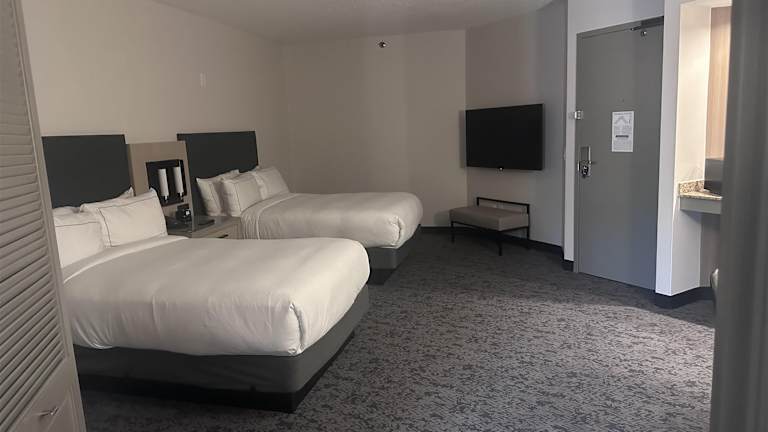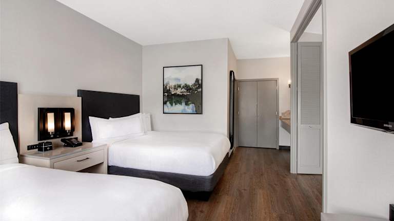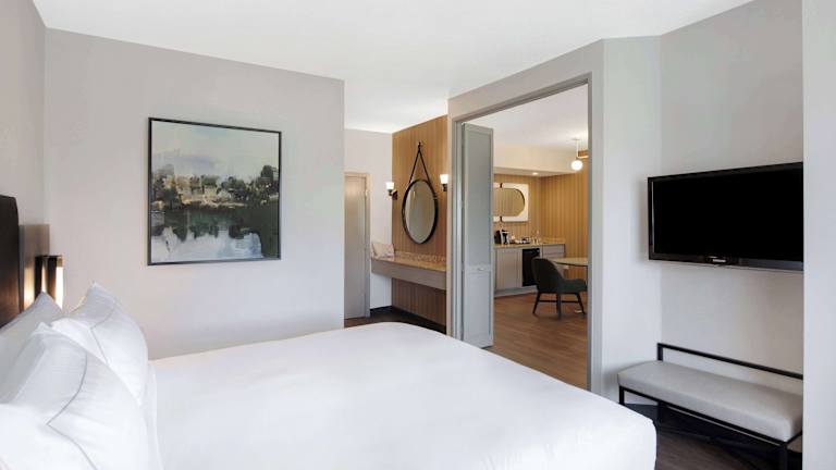 Die 203 Suiten des DoubleTree Suites by Hilton Raleigh-Durham bieten geräumige und komfortable Unterkünfte für die Gäste. Jede Suite verfügt über eine voll ausgestattete Küche, ein Wohnzimmer und ein separates Schlafzimmer. Die Zimmer sind mit Klimaanlage und individuell steuerbarer Heizung ausgestattet und bieten einen Balkon für zusätzlichen Komfort. Zu den Annehmlichkeiten gehören auch ein Schreibtisch und eine Kochnische mit Kühlschrank, Mikrowelle und Kaffeemaschine.