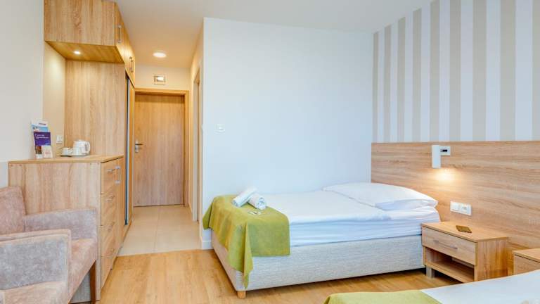 Das Hotel Dozamel liegt nur 300 m vom Zentralstrand von Kołobrzeg entfernt und bietet eine ideale Lage für einen erholsamen Strandurlaub. In der Nähe finden Sie auch beliebte Sehenswürdigkeiten wie die Neue Altstadt, das Rathaus und die Festung Kolberg. Der nächstgelegene Flughafen Stettin-Goleniów ist etwa 81 km entfernt.