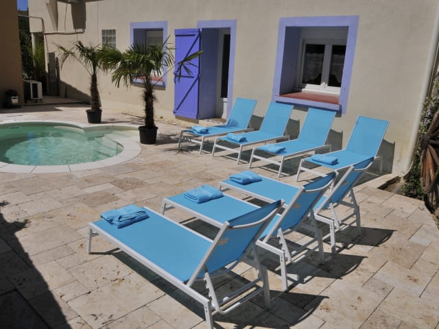 Piscine chauffée, transats et serviettes, Jeux de fléchettes, ping-pong et pétanque, jeux de société.