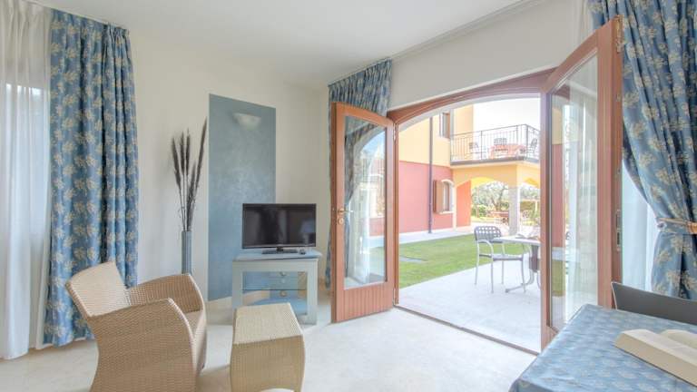 Die Apartments im Villa Due Leoni - Residence sind komfortabel und mit allen Annehmlichkeiten ausgestattet, die Sie für einen angenehmen Aufenthalt benötigen. Jedes Apartment verfügt über eine Klimaanlage, Sat-TV und eine voll ausgestattete Küche, in der Sie Ihre eigenen Mahlzeiten zubereiten können. Die Apartments bieten auch einen Balkon oder eine Terrasse, auf der Sie die herrliche Aussicht auf den Garten oder den Gardasee genießen können.