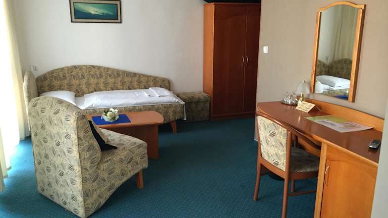 Das Hotel Dukla in Prešov bietet Ihnen eine ideale Lage im Stadtzentrum und eine Vielzahl von Annehmlichkeiten für einen komfortablen Aufenthalt. Genießen Sie die slowakische und internationale Küche im Restaurant, entspannen Sie im Wellnessbereich und profitieren Sie von kostenfreiem WLAN in allen Zimmern. Das Hotel ist der perfekte Ausgangspunkt, um die Sehenswürdigkeiten der Stadt zu erkunden.