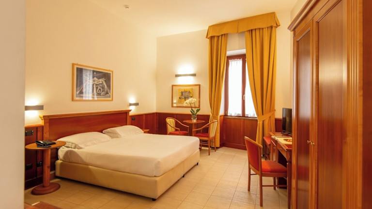 Die Zimmer im Hotel Duomo sind elegant eingerichtet und in warmen Farbtönen gehalten. Alle Zimmer sind klimatisiert und verfügen über einen LCD-TV mit DVD-Player sowie einen kleinen Tisch mit 2 Stühlen. Einige Zimmer bieten sogar einen atemberaubenden Blick auf den Dom. Die Zimmer verfügen über ein eigenes Marmorbad und WLAN ist in allen Bereichen kostenfrei verfügbar.