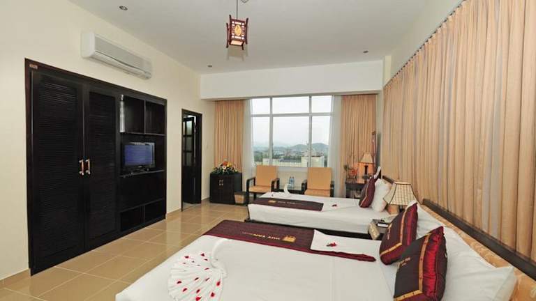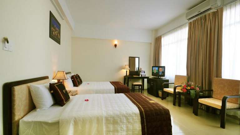 Das Duy Tan 2 Hotel in Hue bietet eine ideale Lage, geräumige Unterkünfte und eine Vielzahl von Annehmlichkeiten für einen angenehmen Aufenthalt. Mit kostenfreiem WLAN, einer Dachterrasse mit Pool und einem gut ausgestatteten Fitnesscenter erfüllt das Hotel die Bedürfnisse aller Gäste. Das freundliche Personal steht Ihnen gerne zur Seite und hilft Ihnen bei der Organisation von Tagesausflügen. Genießen Sie köstliche Mahlzeiten im Restaurant und erleben Sie traditionelle vietnamesische Unterhaltung im Restaurant Royal.