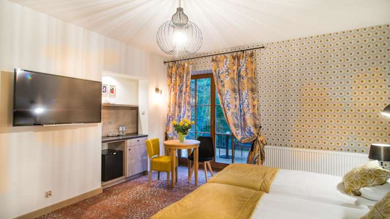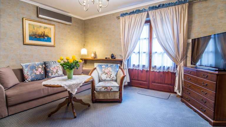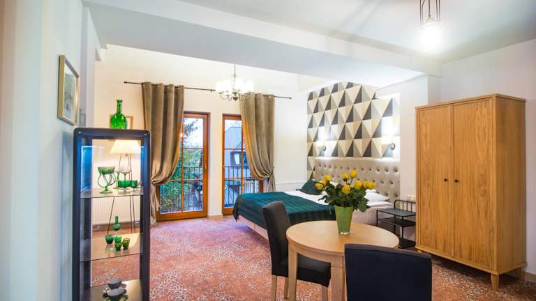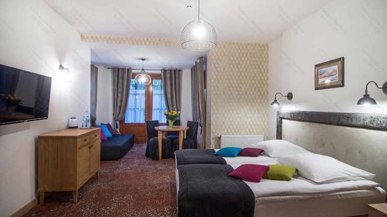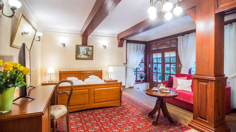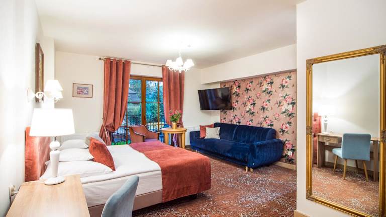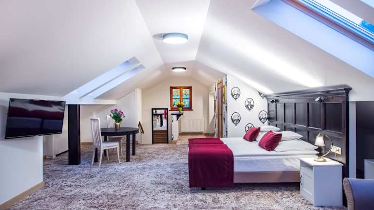 Die Zimmer im Hotel Dwa Księżyce sind individuell gestaltet und klimatisiert. Jedes Zimmer verfügt über ein eigenes Bad mit Dusche und kostenfreien Pflegeprodukten. Zur weiteren Ausstattung gehören ein Fernseher und eine Minibar. Einige Zimmer bieten zusätzlich einen Balkon oder eine Terrasse sowie einen Safe.