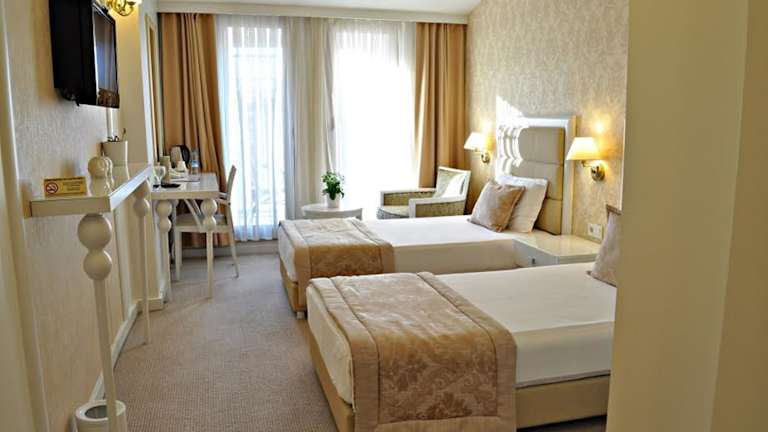 Das Hotel Edirne Palace bietet klimatisierte Zimmer mit einem zeitgemäßen Interieur und modernen Möbeln. Jedes Zimmer ist mit einem LCD-Sat-TV, einer Sitzecke und einer Minibar ausgestattet. Kostenloses WLAN und kostenloses Kaffee- und Teezubehör stehen Ihnen ebenfalls zur Verfügung, um Ihren Aufenthalt so angenehm wie möglich zu gestalten.