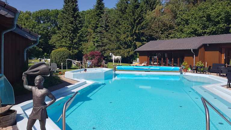 Das Hotel Eifelsteig in Roetgen bietet seinen Gästen einen erholsamen Aufenthalt inmitten der Natur. Mit seinem FKK-Wellnessbereich, der 7 Saunen und 5 Pools umfasst, ist das Hotel ein perfekter Ort, um sich zu entspannen und die Seele baumeln zu lassen. Die einfachen, aber charmanten Zimmer bieten alles, was man für einen angenehmen Aufenthalt benötigt. WLAN ist im gesamten Hotel kostenfrei verfügbar. Genießen Sie einen erfrischenden Drink an der Bar oder entspannen Sie auf der Sonnenterrasse. In der Umgebung gibt es zahlreiche Ausflugsmöglichkeiten, wie das nahegelegene Aachen oder Valkenburg. Der Flughafen Köln/Bonn ist ebenfalls gut erreichbar. Kostenlose Parkplätze stehen den Gästen zur Verfügung.