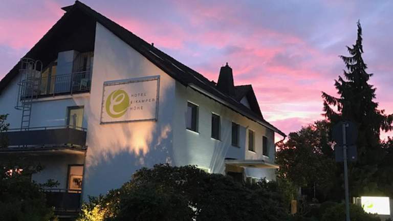 Das Hotel Eikamper Höhe im malerischen Naturpark Bergisches Land bietet eine ideale Lage für Wander- und Radtouren in der Umgebung von Odenthal. Das Hotel überzeugt mit kostenfreiem WLAN und individuell eingerichteten Zimmern. Genießen Sie ein reichhaltiges Frühstücksbuffet mit hausgemachten Spezialitäten und entspannen Sie auf der Terrasse oder in der gemütlichen Lounge am Kamin. Die hellen Zimmer verfügen über moderne Badezimmer und einige bieten einen Schreibtisch. In der Nähe des Hotels finden Sie einen Hochseilgarten und die Große Dhüntalsperre. Bergisch Gladbach erreichen Sie in nur 10 Minuten mit dem Auto, während Köln und Leverkusen in nur 30 Minuten Fahrzeit erreichbar sind. Kostenlose Parkplätze stehen Ihnen am Hotel zur Verfügung.