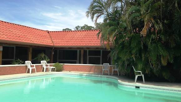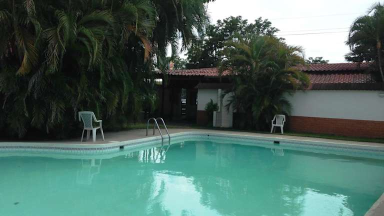 Entdecken Sie das Hotel El Bramadero, ein komfortables Hotel mit Außenpool und Restaurant, nur 500 m vom Hauptplatz in Liberia entfernt. Hier erwartet Sie kostenfreies WLAN in allen Bereichen und kostenfreie Parkplätze. Die Zimmer bieten modernen Komfort mit Klimaanlage, TV mit Kabelkanälen und einem eigenen Bad mit Dusche. Genießen Sie den Blick auf den Garten von Ihrem Zimmer aus. Das Hotel verfügt über eine 24-Stunden-Rezeption, einen Garten und bietet Ihnen auch einen Tourenschalter und Wäschemöglichkeiten. Die Unterkunft befindet sich in der Nähe des Parks Héctor Zúñiga und des Marktes von Liberia. Der internationale Flughafen Liberia ist weniger als 20 Autominuten entfernt.