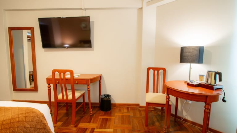 Das El Tumi Hotel befindet sich nur 5 Gehminuten vom Hauptplatz von Huaraz entfernt. In unmittelbarer Nähe finden Sie eine Vielzahl von Geschäften, Restaurants und Sehenswürdigkeiten. Der Busbahnhof ist ebenfalls nur 5 Gehminuten entfernt und der Flughafen Anta erreichen Sie nach einer 30-minütigen Fahrt.