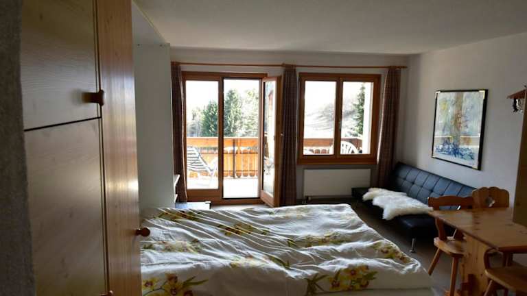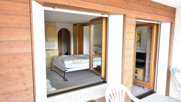 Das Studio verfügt über ein Schlafzimmer, ein Wohnzimmer und eine gut ausgestattete Küche mit Kühlschrank und Ofen. Ein Flachbild-TV ist ebenfalls vorhanden. Das Badezimmer ist mit einer Dusche ausgestattet. Handtücher und Bettwäsche können gegen Aufpreis bereitgestellt werden. Von der Terrasse aus genießen die Gäste den Blick auf die Berge.