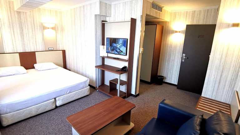 Buchen Sie das Elate Plaza Hotel für einen komfortablen und praktischen Aufenthalt in Sofia. Mit kostenfreiem WLAN, kostenfreien Parkplätzen und einem 24-Stunden-Shuttleservice vom und zum Flughafen bietet das Hotel alles, was Sie für einen stressfreien Aufenthalt benötigen. Entspannen Sie im Ruhebereich mit Massagen oder in der Sauna und erkunden Sie die Stadt mit einer Stadtrundfahrt.