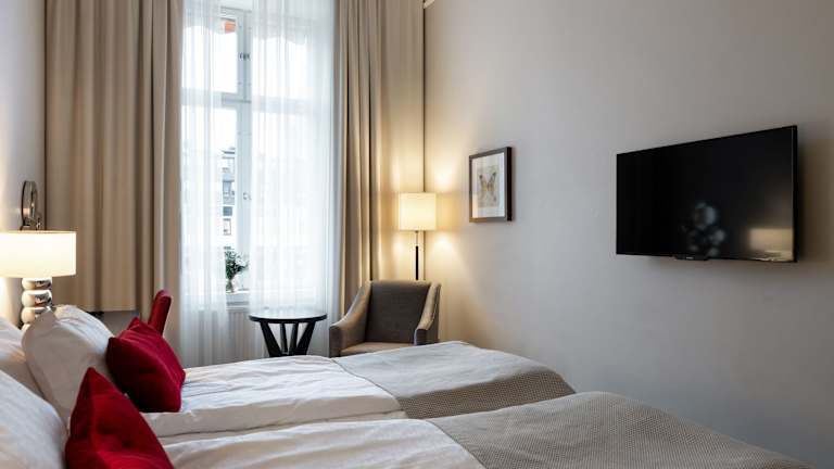 Das Elite Stora Hotellet verfügt über 92 Nichtraucherzimmer, die sich über 4 Etagen erstrecken. Die Zimmer sind über einen Aufzug erreichbar und bieten Ihnen eine komfortable Ausstattung. Zur Standardausstattung gehören eine Heizung, ein Doppelbett, eine Minibar, ein Schreibtisch und ein Flachbild-TV. Einige Zimmer bieten einen herrlichen Blick auf den mittelalterlichen Marktplatz und den Dom von Linköping. Die Badezimmer verfügen entweder über eine Badewanne oder eine Dusche und sind mit einem Haartrockner und Pflegeprodukten ausgestattet.