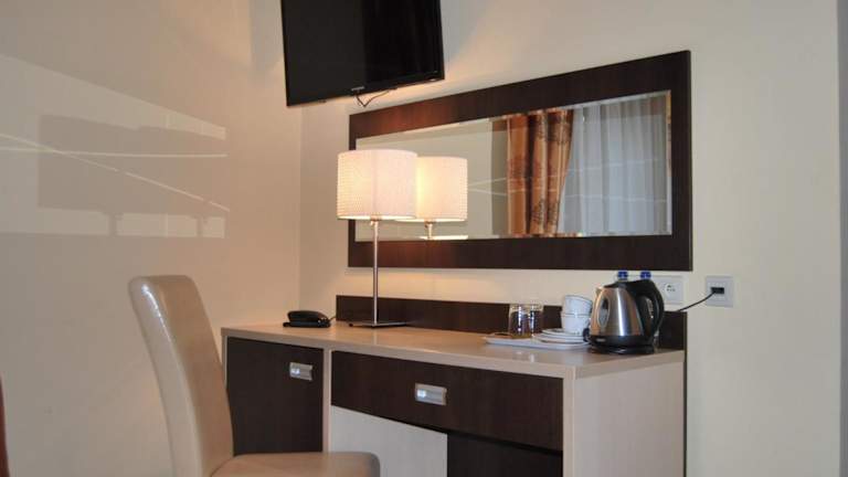 Die Zimmer im Hotel Eljot sind hell und klassisch eingerichtet. Jedes Zimmer verfügt über einen Flachbild-TV, einen Kühlschrank und einen Wasserkocher. Das eigene Badezimmer ist mit einer Dusche und Handtüchern ausgestattet. Bettwäsche wird bereitgestellt, um Ihren Aufenthalt so angenehm wie möglich zu gestalten.