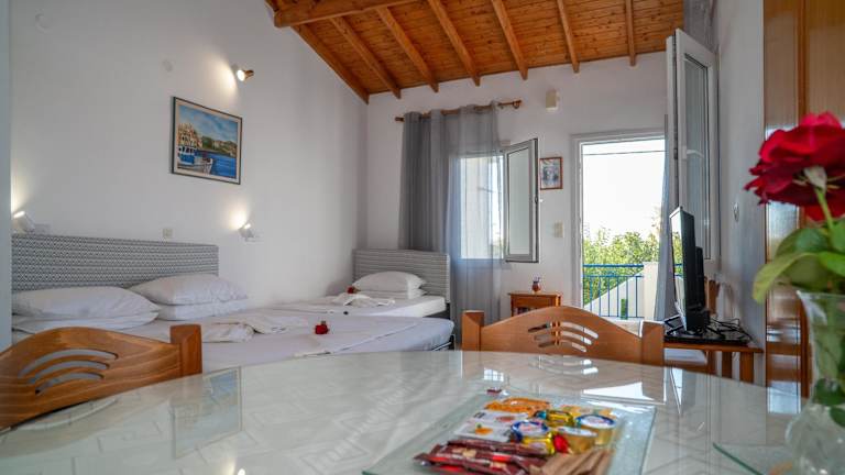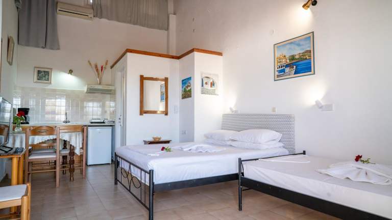 In unmittelbarer Nähe des Hotels finden Sie eine Bäckerei und einen Minimarkt, in denen Sie sich mit allen notwendigen Lebensmitteln und Snacks versorgen können. Darüber hinaus gibt es zahlreiche Tavernen, Bars und Cafés in Marathokampos, in denen Sie lokale Spezialitäten genießen können.