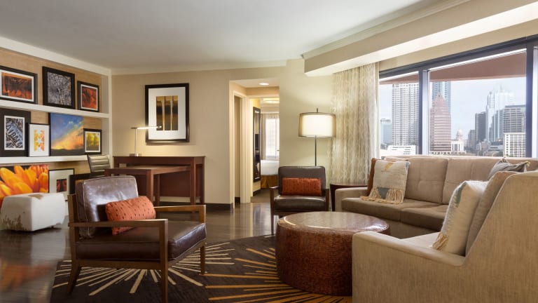 Das Embassy Suites by Hilton Austin Downtown South Congress bietet geräumige Zwei-Zimmer-Suiten, in denen die Gäste sich wie zu Hause fühlen können. Jede Suite verfügt über einen separaten Wohnbereich und ein Schlafzimmer sowie eine voll ausgestattete Küche. Zur Ausstattung gehören auch kostenloses WLAN, ein Flachbildfernseher, ein Schreibtisch und ein Safe.