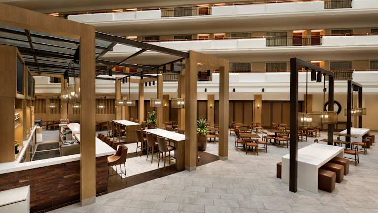 Das Hotel bietet ein kostenloses made-to-order Frühstück, bei dem die Gäste ihre Lieblingsspeisen aus einer Vielzahl von Optionen auswählen können. Am Abend können die Gäste den kostenlosen Abendempfang genießen, bei dem sie kostenlose Getränke und Snacks genießen können. Das Hotel verfügt auch über das SoCo Bar & Bites Restaurant, das eine voll ausgestattete Bar und eine Auswahl an südwestlicher Küche bietet.