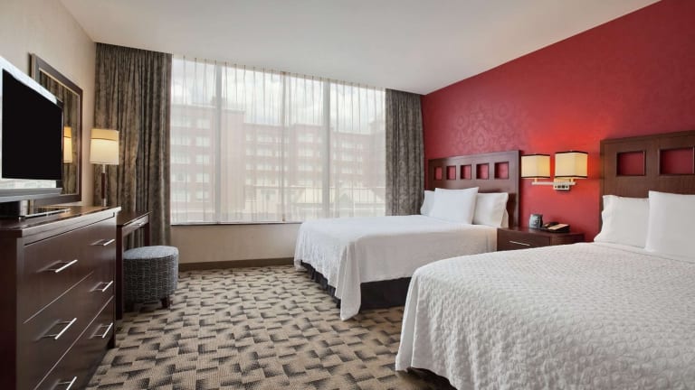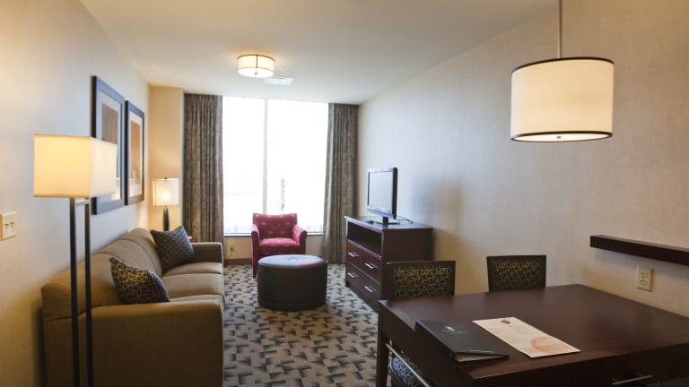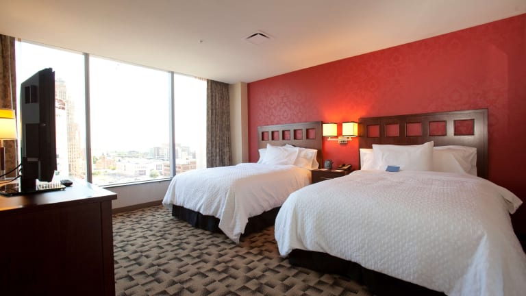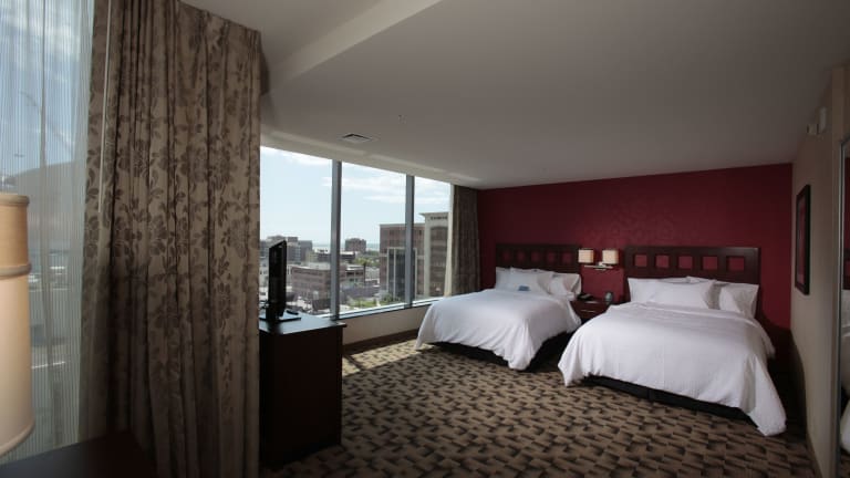 Das Embassy Suites Buffalo in Buffalo, New York bietet den Gästen ein komfortables und angenehmes Aufenthaltserlebnis. Mit kostenlosen Annehmlichkeiten wie einem täglichen warmen Frühstück und kostenlosem Highspeed-Internetzugang können die Gäste ihren Aufenthalt genießen. Die Zimmer sind modern ausgestattet und verfügen über einen Flachbild-LCD-TV mit Filmen auf Abruf sowie eine Kaffeemaschine, eine Mikrowelle und einen Minikühlschrank. Das Hotel bietet auch ein hoteleigenes Restaurant und einen Fitnessraum. Weitere Annehmlichkeiten wie ein Schönheitssalon und ein Lebensmittelgeschäft sind ebenfalls vorhanden. Die Lage des Hotels ermöglicht es den Gästen, die Sehenswürdigkeiten von Buffalo, einschließlich des Buffalo Theater Districts und des Buffalo Zoo, zu erkunden. Auch die Walden Galleria und die Niagara Falls sind nur eine kurze Autofahrt entfernt.