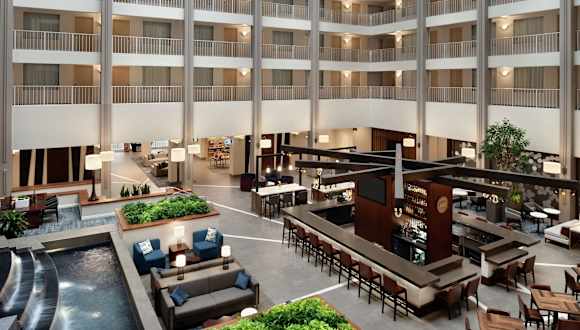 Das Embassy Suites Cincinnati - RiverCenter ist ein komfortables Suitehotel in Covington, Kentucky, nur wenige Minuten vom Stadtzentrum von Cincinnati entfernt. Mit einer Mikrowelle, einem Mini-Kühlschrank und einem Flachbild-TV in jeder Suite bietet das Hotel seinen Gästen alle Annehmlichkeiten für einen angenehmen Aufenthalt. Genießen Sie jeden Morgen ein kostenloses Frühstück und entspannen Sie am Abend beim Manager-Empfang. Die Lage des Hotels ermöglicht es Ihnen, verschiedene Attraktionen wie den Great American Ballpark, das Newport Aquarium und das Unterhaltungsviertel Banks bequem zu erreichen.