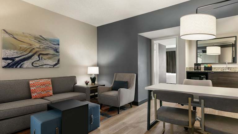 Das Embassy Suites by Hilton Los Angeles Downey bietet seinen Gästen eine komfortable Unterkunft mit vielen Annehmlichkeiten. Genießen Sie den Innenpool, das Fitnesscenter und das tägliche Frühstück. Das Hotel verfügt über geräumige Suiten mit Klimaanlage, zwei Flachbild-TVs und einer gut beleuchteten Arbeitsfläche. Das Brickstone Grill Restaurant serviert köstliche amerikanische Gerichte und bietet zudem eine Happy Hour. Das Hotel bietet eine praktische Lage in der Nähe des Downey Civic Centers und ist ideal für Geschäftsreisende und Urlauber.
