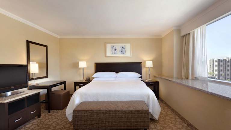 Die Suiten im Embassy Suites Los Angeles Glendale sind geräumig und komfortabel eingerichtet. Jede Suite verfügt über ein separates Wohnzimmer, eine Wet Bar und eine Mikrowelle. Die Zimmer sind in warmen Farben gehalten und mit dunklen Holzmöbeln ausgestattet. Ein Flachbild-TV mit Premium-Kabelkanälen und ein Schreibtisch gehören ebenfalls zur Ausstattung.