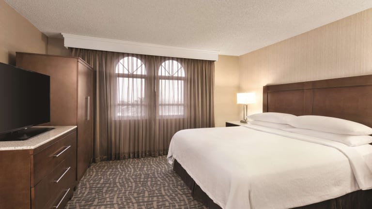 Das Embassy Suites by Hilton Santa Ana - Orange County Airport ist ein geräumiges, 100% rauchfreies Hotel in Santa Ana, Kalifornien, das seinen Gästen komfortable Unterkünfte, praktische Annehmlichkeiten und eine hervorragende Gastronomie bietet. Die Suiten des Hotels verfügen über separate Wohn- und Schlafbereiche sowie zwei Fernseher mit Pay-per-View-Kanälen und WLAN-Zugang. Zur Ausstattung gehören auch eine kleine Bar mit Kühlschrank, Mikrowelle und Kaffeemaschine. Am Morgen erwartet die Gäste ein kostenloses Frühstück nach Wunsch. Entspannung finden die Gäste im Innenpool oder im modernen Fitnesscenter. Abends lädt die Manager's Reception zu einem Drink ein. Im hoteleigenen Restaurant The Refinery können die Gäste in entspannter Atmosphäre zu Mittag und zu Abend essen.