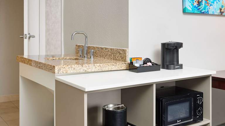 Die Zimmer im Embassy Suites by Hilton West Palm Beach Central sind komfortabel und modern eingerichtet. Sie verfügen über Annehmlichkeiten wie einen Flachbild-Kabel-TV, einen Sitzbereich, eine Mikrowelle und einen kleinen Kühlschrank. Das Hotel bietet auch rollstuhlgerechte Einrichtungen und verschiedene Zimmerkategorien, darunter Familien- und Nichtraucherzimmer.