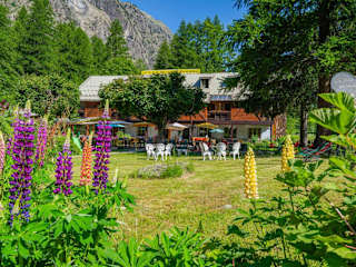 Einfaches Hotel mitten in den Bergen. Schöner Garten mit Liegen und Stühlen zum… weiterlesen