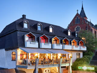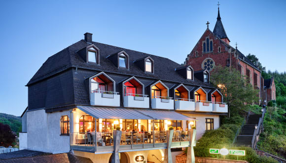 Das hoteleigene Restaurant serviert morgens ein reichhaltiges Frühstücksbuffet und abends regionale Gerichte aus Rheinland-Pfalz. An der Bar können Sie internationale Getränke genießen.