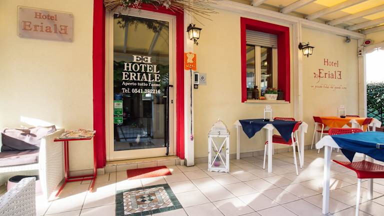 Das Hotel Eriale in Rimini bietet eine ideale Lage im Zentrum der Stadt, nur wenige Schritte vom Strand entfernt. Genießen Sie ermäßigte Preise und entspannen Sie auf der Terrasse mit einem Drink aus der hoteleigenen Bar. Kostenloses WLAN steht Ihnen zur Verfügung. Die Zimmer sind klimatisiert und verfügen über einen Flachbild-TV sowie ein eigenes Badezimmer mit einem Haartrockner. Einige Zimmer bieten zudem einen Balkon. Beginnen Sie Ihren Tag mit einem köstlichen Frühstück, das frische Fruchtsäfte, Kuchen und Aufschnitt umfasst. An der Bar können Sie auch Getränke und Snacks genießen. Darüber hinaus erhalten Sie Ermäßigungen in ausgewählten Pubs und Restaurants in der Umgebung. Das Hotel Eriale liegt neben einer Bushaltestelle, die Ihnen eine gute Anbindung an den Bahnhof Rimini, Riccione und den Flughafen Rimini bietet.