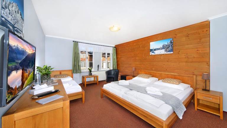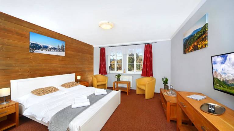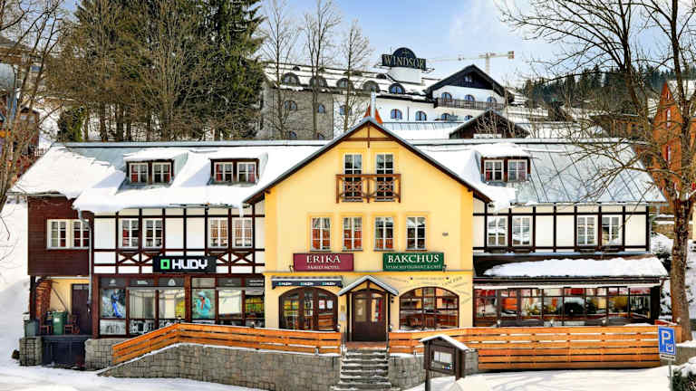 Das Hotel Erika in Špindlerův Mlýn ist ein charmantes, familiengeführtes Hotel im Herzen der Stadt. Die Zimmer sind komfortabel und mit modernen Annehmlichkeiten wie einem LCD-TV und einem eigenen Bad ausgestattet. Im hoteleigenen Restaurant können Sie regionale und internationale Küche sowie eine große Auswahl an Weinen genießen. Entspannen Sie sich nach einem aktiven Tag in der Sauna, die Sie nach vorheriger Reservierung kostenfrei nutzen können. Das Hotel bietet auch eine Skiaufbewahrung mit einem Skischuhtrockner. Parken Sie Ihr Fahrzeug bequem und kostenfrei auf dem öffentlichen Parkplatz in der Nähe des Hotels.