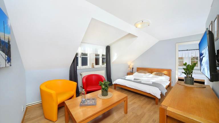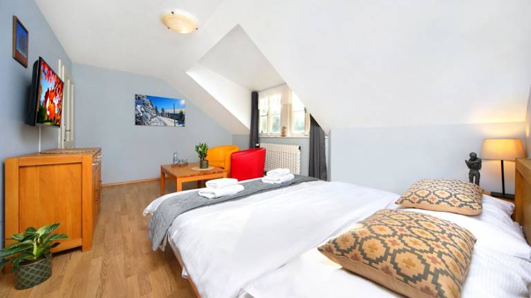 Das Hotel Erika liegt zentral in Špindlerův Mlýn und bietet eine ideale Ausgangslage, um die Stadt und die umliegende Natur zu erkunden. In der Nähe finden Sie Geschäfte, Restaurants und andere Freizeiteinrichtungen. Die Umgebung bietet viele Möglichkeiten für Outdoor-Aktivitäten wie Skifahren, Wandern und Radfahren. Die Skigebiete sind leicht erreichbar und bieten beste Bedingungen für Wintersportler.