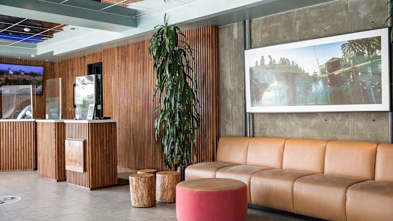 Das Hotel Erwin liegt direkt am Pazifik und bietet einen spektakulären Blick auf den Venice Beach. Der Venice Beach Boardwalk ist nur wenige Schritte entfernt und lädt zu einem Spaziergang entlang des Strandes ein. Die Umgebung bietet auch Radwege und Bereiche zum Inlineskaten, um die Küste zu erkunden. Santa Monica und Marina del Rey sind ebenfalls leicht zu erreichen und bieten weitere Freizeitmöglichkeiten und Attraktionen.