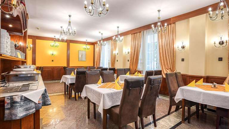 Das Hotel Erzsébet bietet eine gehobene ungarische Küche sowie internationale Gerichte im hoteleigenen Restaurant. Sie können Ihre Mahlzeiten im Restaurant oder auf der hübschen Terrasse genießen. Es wird auch eine Halbpensionsoption angeboten, die ein reichhaltiges Frühstücksbuffet, ein Mittagsbuffet und Abendessen umfasst. Es stehen auch alkoholfreie Getränke zur Auswahl.