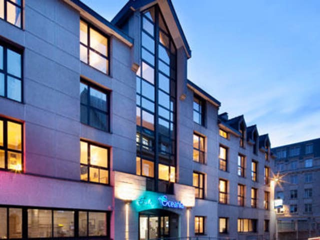 Das Hotel Escale Oceania Quimper Centre bietet eine moderne und komfortable Unterkunft im Zentrum von Quimper. Die Lage des Hotels ist ideal, da es nur wenige Gehminuten von der Kathedrale und dem Bahnhof entfernt ist. Die Zimmer sind modern eingerichtet und bieten kostenfreies WLAN sowie einen Flachbild-TV. Das Hotelrestaurant serviert traditionelle französische Gerichte aus regionalen Zutaten und ein Zimmerservice ist ebenfalls verfügbar. Mit seiner zentralen Lage ist das Hotel ein perfekter Ausgangspunkt, um die Küstenstadt Concarneau, Benodet, Locronan und Pont-Aven zu erkunden.
