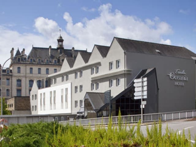 Das Escale Oceania Vannes Centre ist ein charmantes Hotel im Herzen von Vannes, das seinen Gästen eine ideale Lage bietet, um die historische Altstadt und die umliegenden Geschäfte zu erkunden. Die schallisolierten Zimmer mit kostenfreiem WLAN bieten den Gästen Komfort und Ruhe. Genießen Sie das Frühstücksbuffet und die Möglichkeit, das Abendessen im Restaurant oder auf Ihrem Zimmer servieren zu lassen. Die Nähe zu den Sehenswürdigkeiten der Region, wie der Halbinsel Quiberon und der Stadt Carnac, machen das Hotel zu einem idealen Ausgangspunkt für Erkundungstouren.